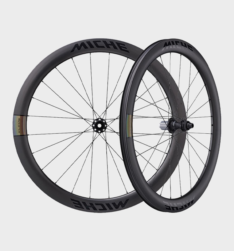 Оновлена серія Kleos відображає еволюцію концепту продуктивності коліс для шосе. За основу для її створення взято досвід, здобутий інженерами Miche в процесі розробки лінійки коліс преміумкласу Kleos RD (Race Division).