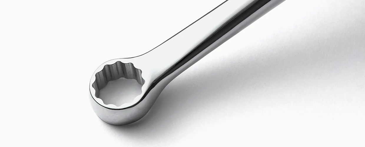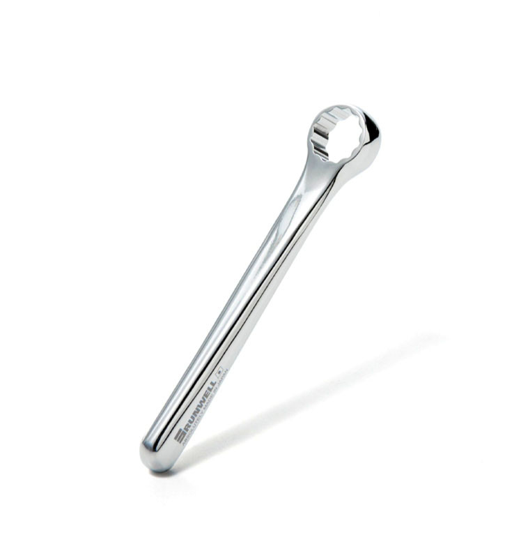 12-точковий профіль запобігає пошкодженню гайок. Вигин інструмента під кутом 15° мінімізує ризик випадково затиснути пальці між вилкою та ключем під час роботи.